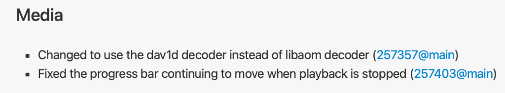 I original thought that maybe it was a error in the notes so I clicked on the link to see whether the changes were still committed to GitHub and it appears it is still there (link) so it makes me wonder whether they’re wanting to wait until it is more mature before announcing it as a feature. Given the complexity of AV1 I wouldn’t be surprised if there is going to be a good amount of time spent on optimising the CODEC as much as they can – maybe make use of Metal performance shaders? I guess we’ll need to ‘wait and see’ what happens. It’ll be interesting to see whether this will roll out to tvOS – the CPUs being used on the Apple TV running tvOS should be sufficiently powerful enough to decode without too many issues given the massive performance lead that Apple has when it comes to their SoC designs.