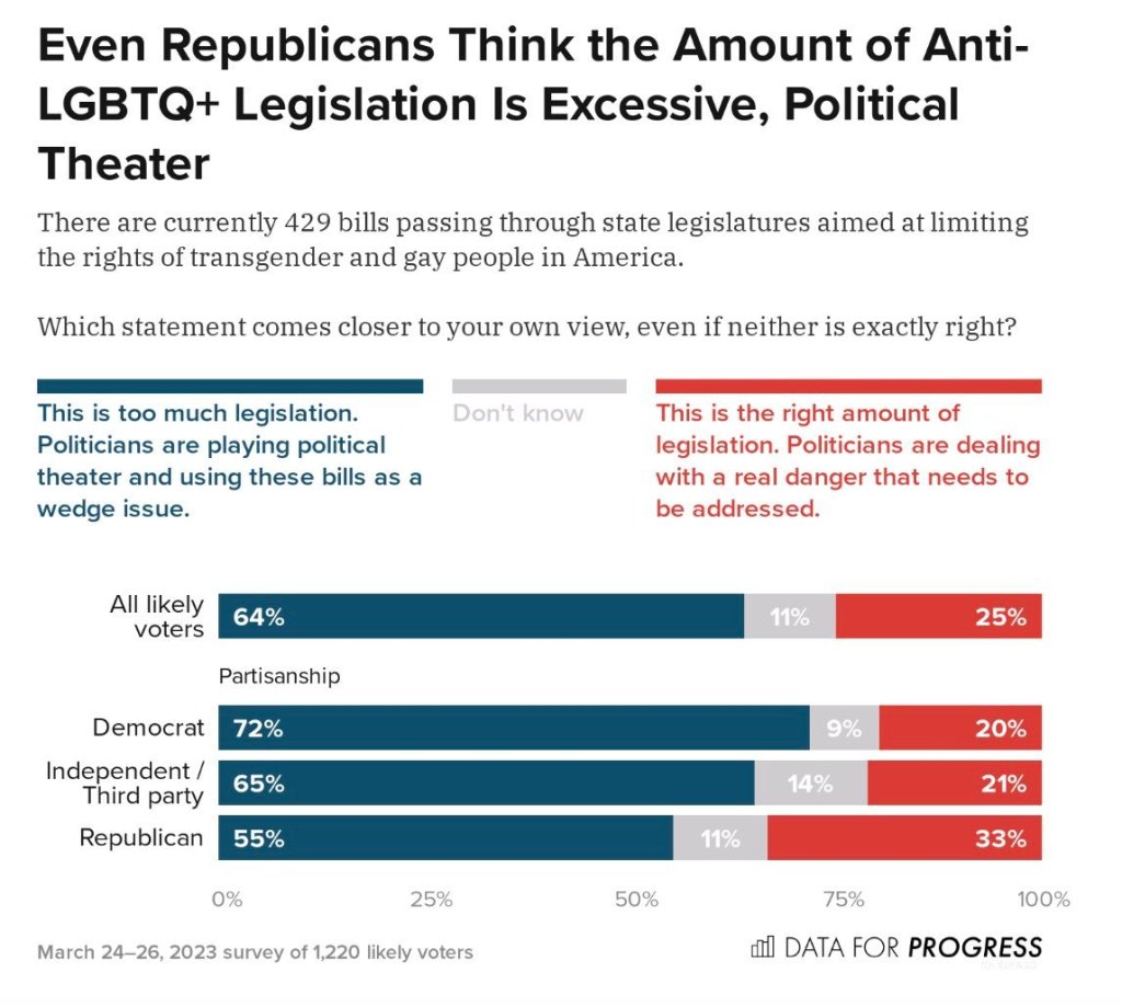 I think the one thing to remind oneself is this: the internet is not the real world and activists don’t necessarily represent the mainstream of the community they’re advocating for. I say this because so much of the rancor and rage out there is fermented by people using the internet as the barometer of what is actually happening in the real world. The Republicans for example have convinced themselves that people like Matt Walsh, Ben Shapiro, Michael Knowles etc. represent the mainstream along with activists who keep keep bringing up the usual nonsense about wokeness and LGBTQ+ getting out of control but then you have polls such as these two (sourced from the following Twitter account):
