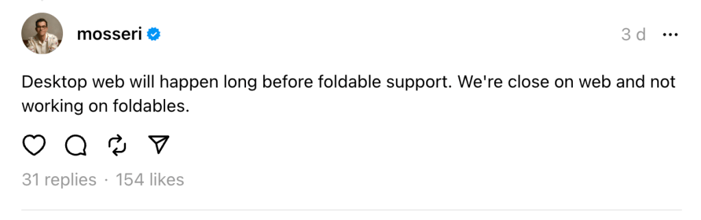 Adam Mosseri, head of Instagram, when asked regarding the desktop version of Threads (that can be accessed through a website) will be launched he noted on his Threads feed (link):