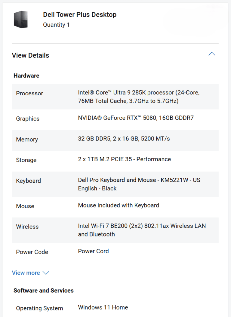 I’m looking at getting a Dell Tower Plus with the following specs: