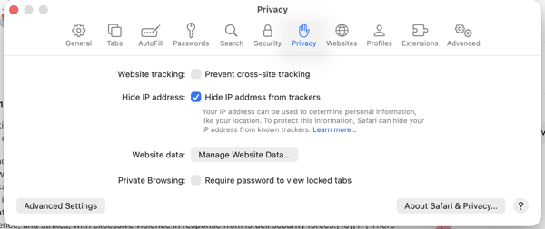 Another interesting setting I came accross was the ‘prevent cross-site tracking’ setting within Safari: